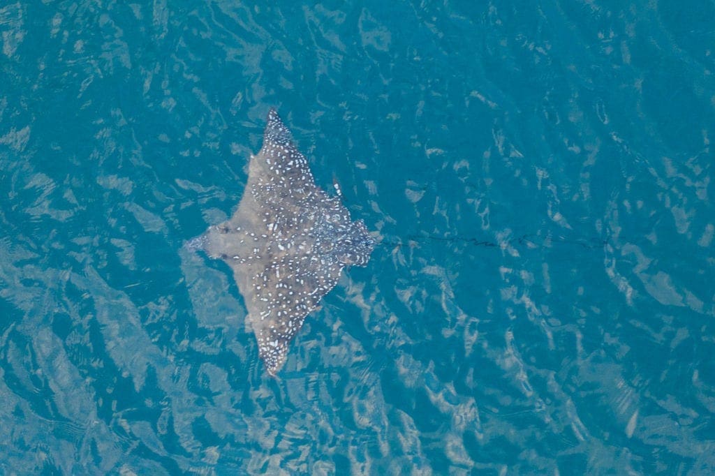 The Spotted Eagle Ray is a visual stunning species of the Eagle Ray family (Myliobatidea). Dark in colour and covered in white spots or rings its striking pattern is hard to miss! Guests this week we’re treated to a sighting of four Eagle Rays swimming together on the surface of the water. What was particularly special about this encounter is that we saw these beautiful creatures on two consecutive days in two separate locations. The footage from our talented crew has been sent to the Eye on the Reef Sightings Network, and we believe the sightings were of the exact same animals!