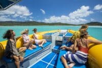 Experience Ocean Rafting’s signature adrenalin fuelled action while exploring the islands, inlets and beaches on custom built semi-rigid inflatable vessels, travelling at speeds of up to 30 knots. The vessels are up to 12 metre semi-rigid inflatable vessels, originally designed and built as rescue crafts and are driven by 500hp engines, allowing you to experience a fun, high speed ride amongst the natural beauty of the Whitsundays.